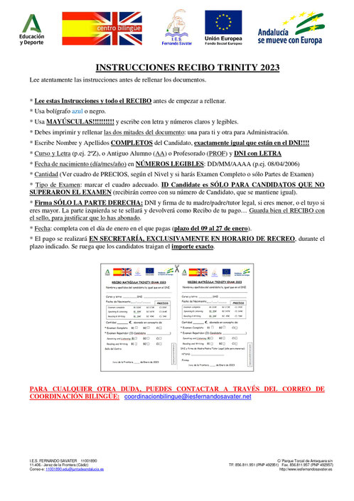 For more than seven years, this Department has been involved in preparing candidates for these official exams, with quite satisfactory results among our students, taking into account the scarce resources available and thanks to the enormous effort of the preparatory teachers, the different coordinators that we have had and the rest of the school staff. So far, the level of B1 (ISE I for Trinity) has been prepared in Optional Subject in 3rd (initiation) and in ordinary class in 4th, B2 (ISE II) in Optional Subject of 1st Bachillerato and even of C1 (ISE III) in Ordinary class of 2nd Bachillerato. In addition, when possible, we have had the help of the Conversation Assistants for the practice of oral skills.