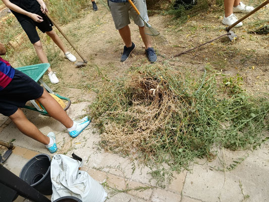 También hemos retomado el proyecto del curso anterior y todos los restos vegetales de la limpieza del huerto los hemos puesto en la compostera.