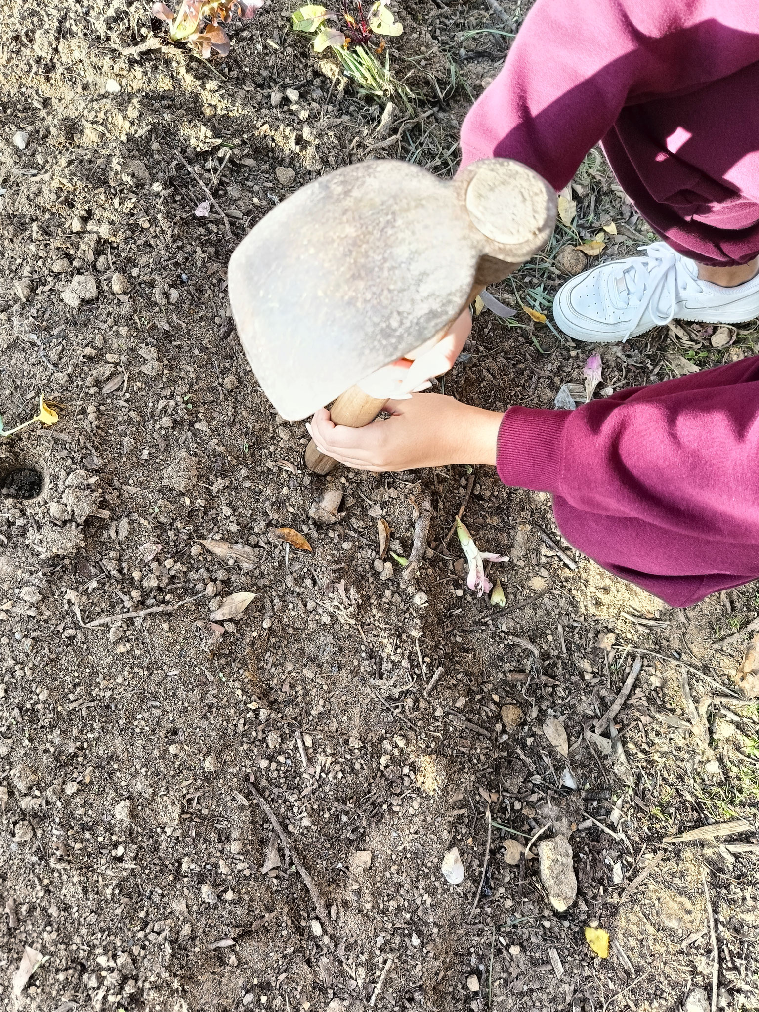 Nuestras hortelanas y hortelanos han estado eliminando malezas y regando para rehidratar el suelo. Y han conocido la laya, una herramienta que sirve para aflojar el suelo sin darle la vuelta (porque a los organismos del suelo profundo no les gusta tomar el sol ⛔😎).