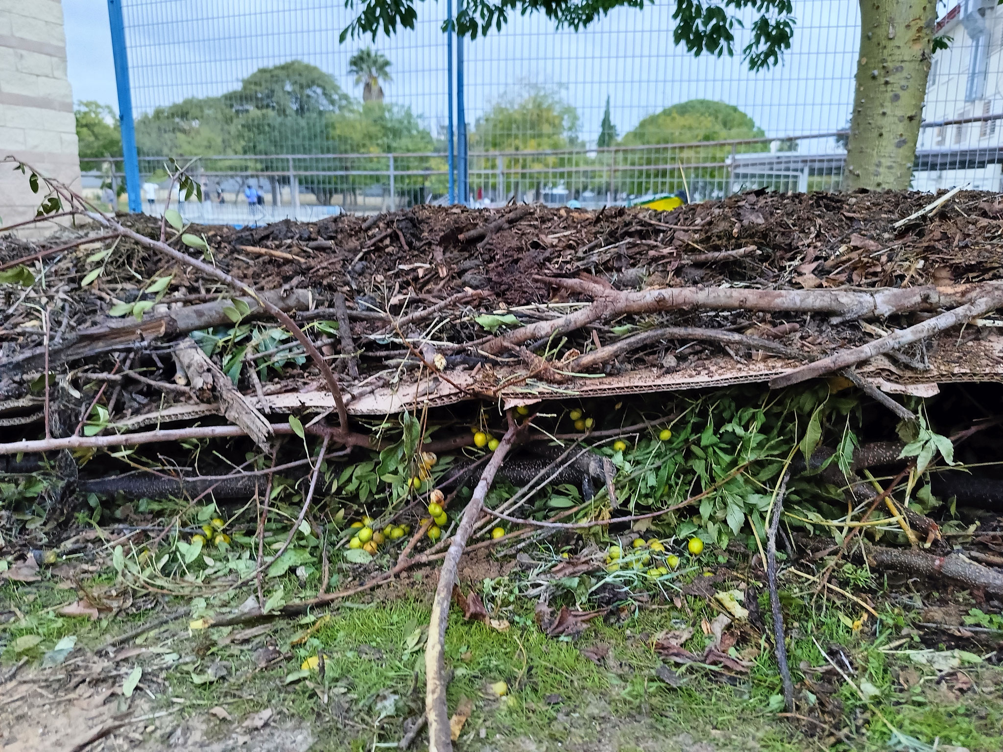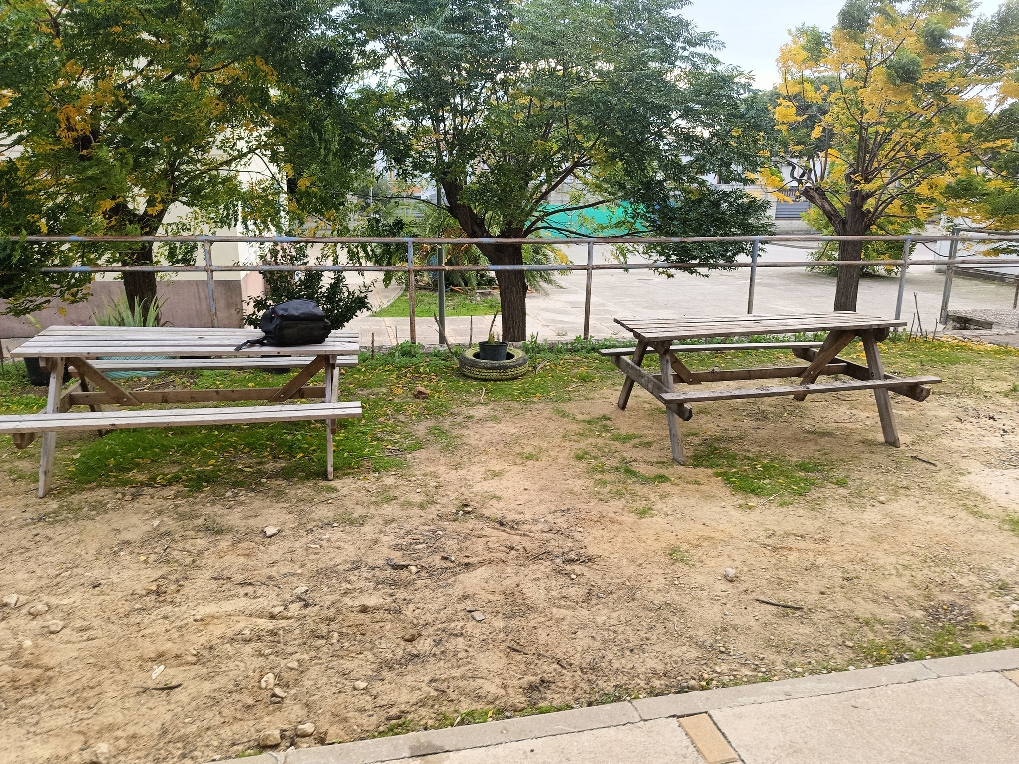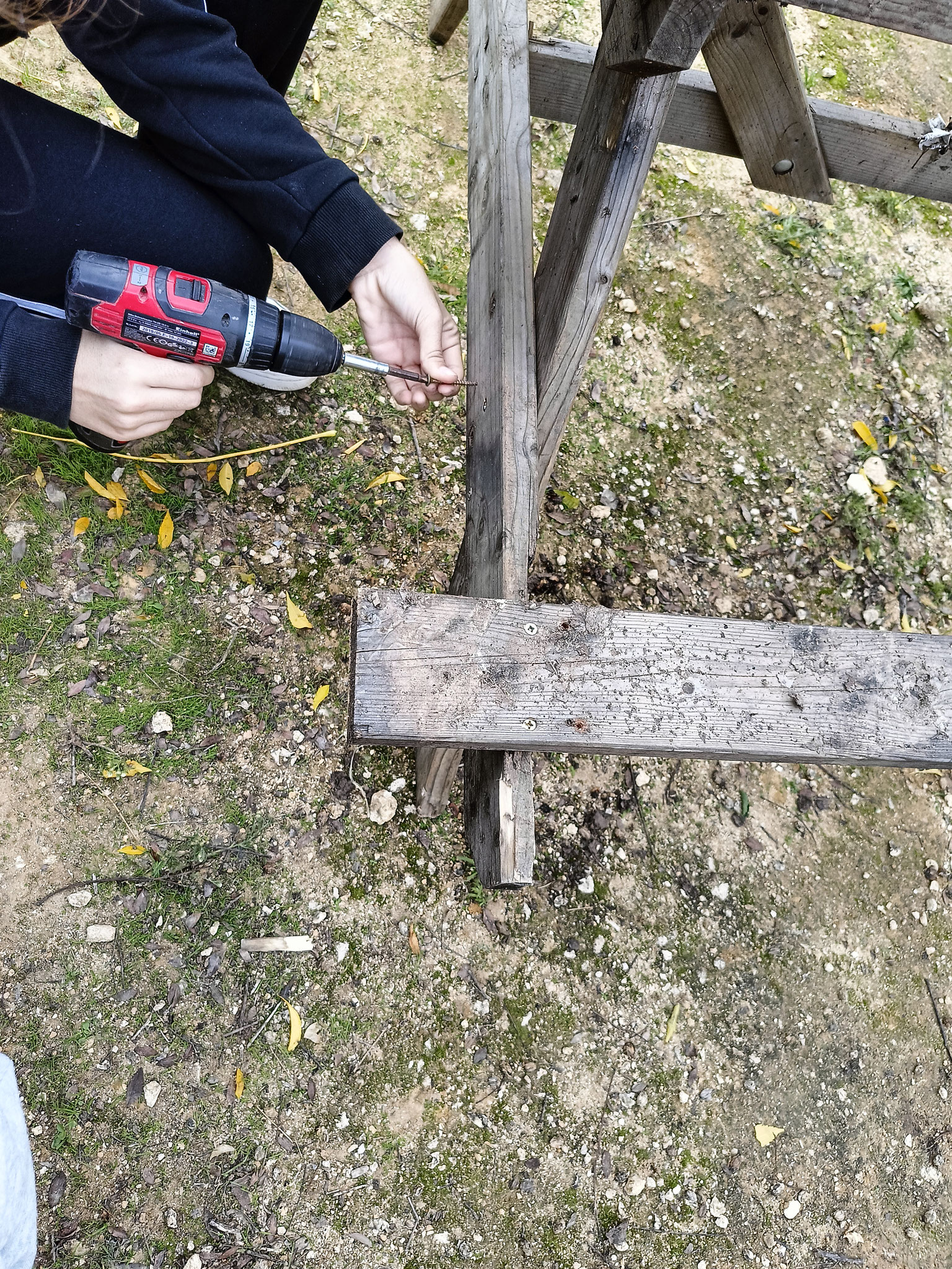 Y como en invierno se ralentiza la fotosíntesis y hay otros trabajillos que hacer, se han reparado las mesas de picnic (para usarlas al 🌝en primavera) y se ha restaurado el 🏨 de insectos🐝🦗🐞
